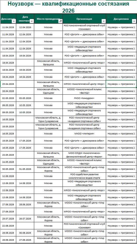 | Испытания и состязания по служебным и игровым видам, 2026 год