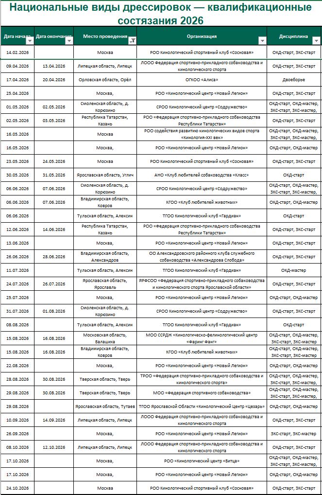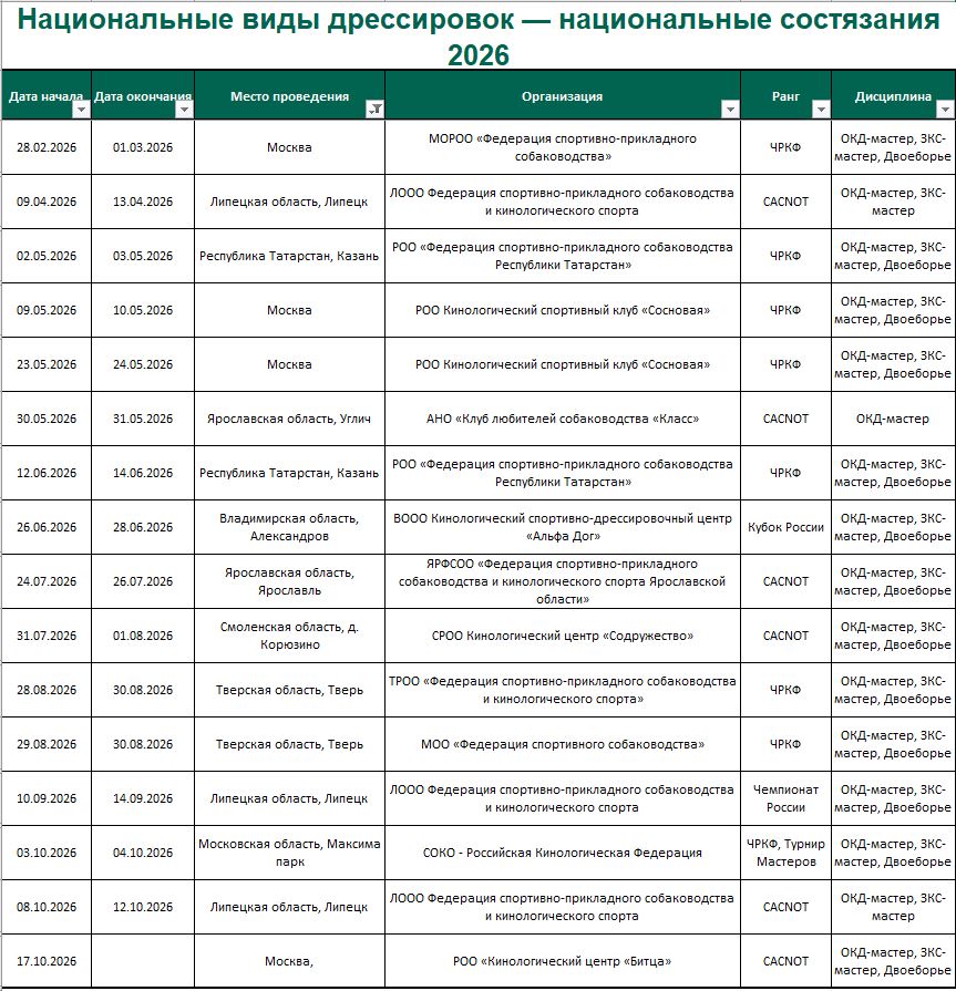 Календарь РКФ/МС состязаний/испытаний на 2026 г.